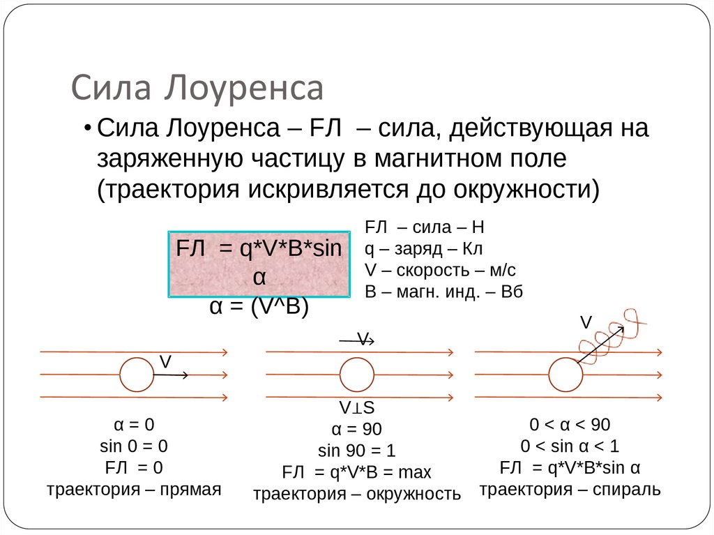 Сила Лоуренса• Сила Лоуренса – FЛ – сила, действующая на