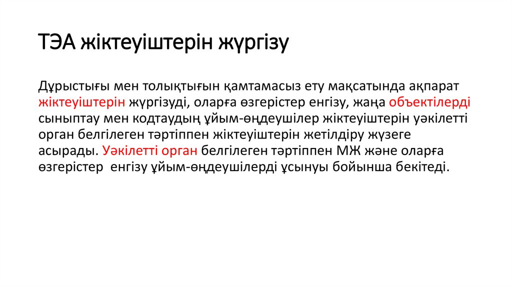 Дұрыстығы мен толықтығын қамтамасыз ету мақсатында ақпаратжіктеуіштерін жүргізуді, оларға өзгерістер енгізу, жаңа объектілерді