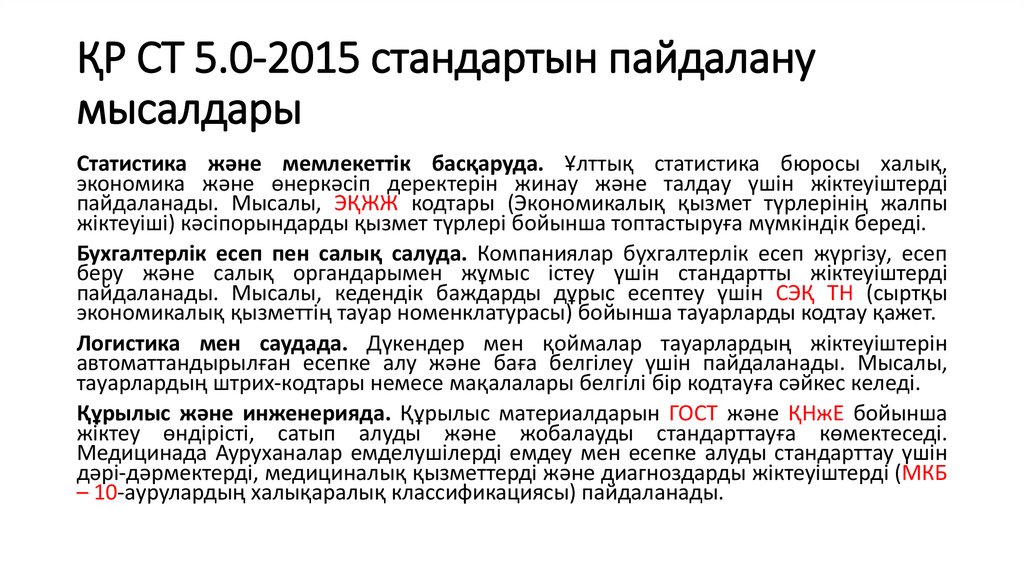 13. ҚР СТ 5.0-2015 стандартын пайдалану мысалдары
