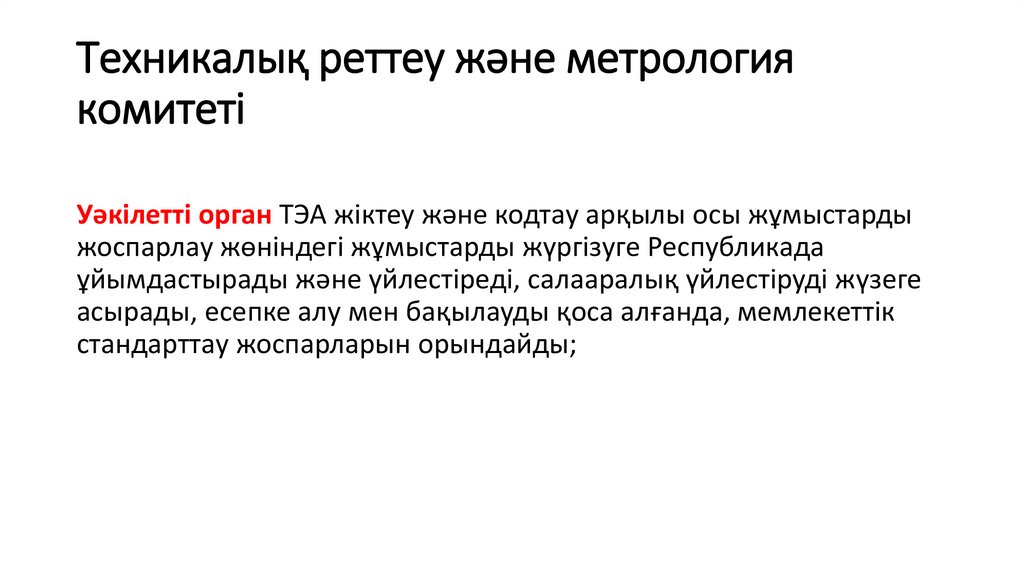 • ТЭА экономиканы басқару жүйелерінде реттеу, біріздендіру, жіктеужәне кодтау;