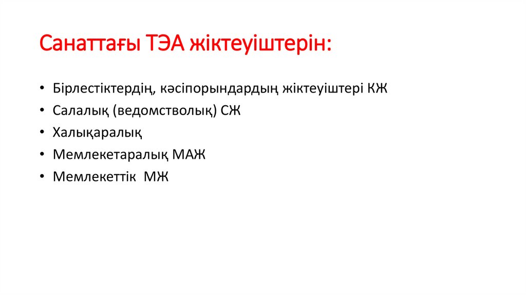 • Бірлестіктердің, кәсіпорындардың жіктеуіштері КЖ• Салалық (ведомстволық) СЖ