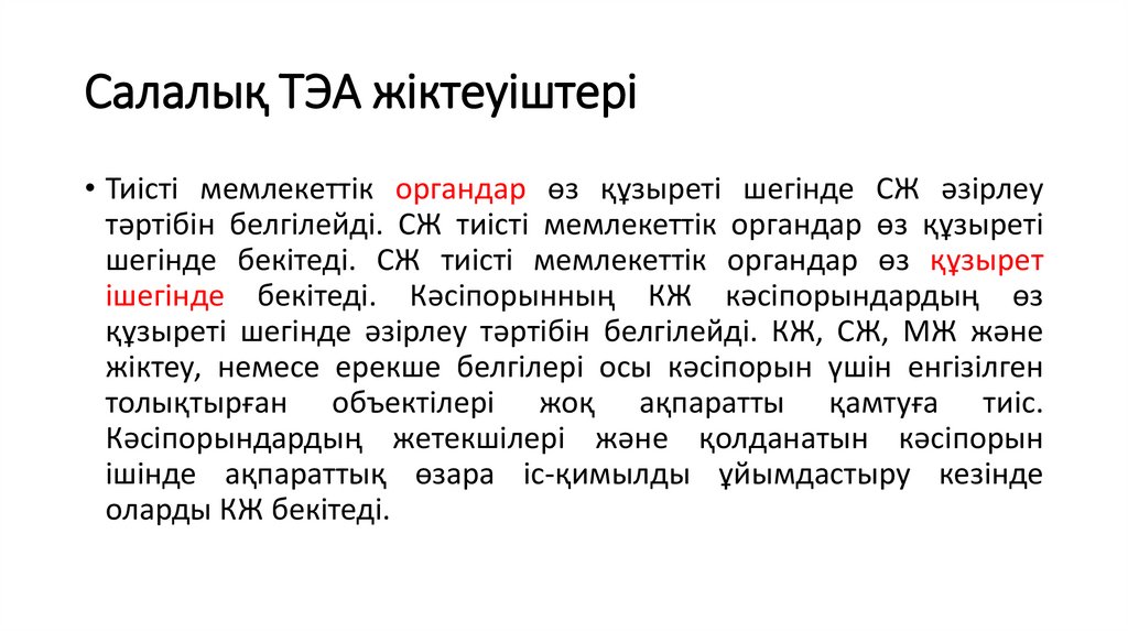 • Тиісті мемлекеттік органдар өз құзыреті шегінде СЖ әзірлеутәртібін белгілейді. СЖ тиісті мемлекеттік органдар өз құзыреті