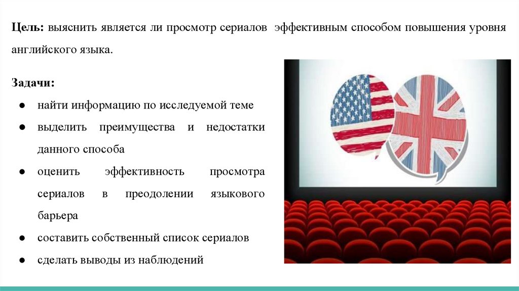 Цель: выяснить является ли просмотр сериалов эффективным способом повышения уровняанглийского языка.