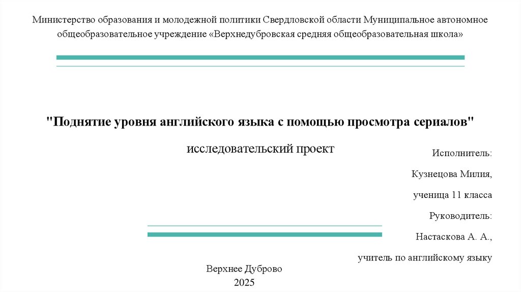 Министерство образования и молодежной политики Свердловской области Муниципальное автономноеобщеобразовательное учреждение «Верхнедубровская средняя общеобразовательная школа»