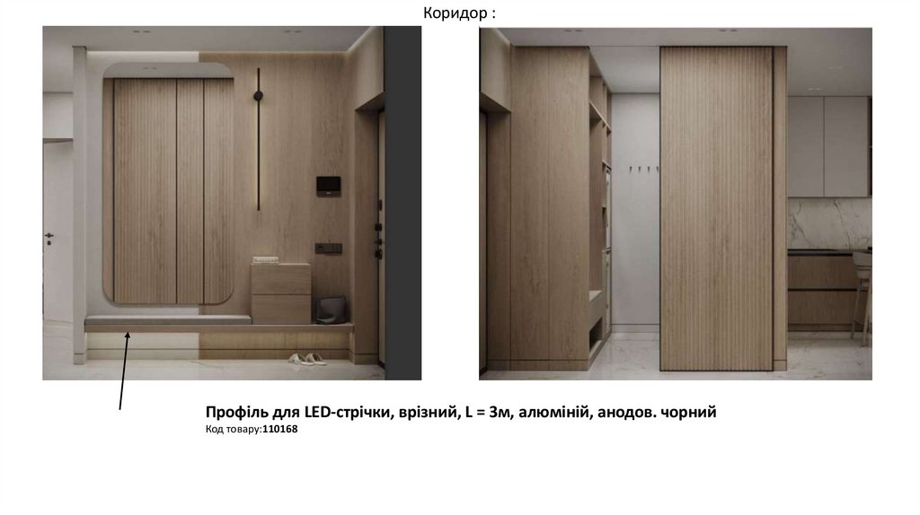 Коридор :Профіль для LED-стрічки, врізний, L = 3м, алюміній, анодов. чорний