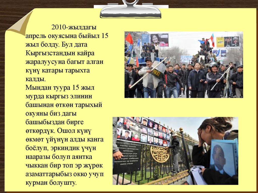 Апрель күндөрү Ала-Тоо аянтын канмайданга айланткан, ошол кыйын кезеңде