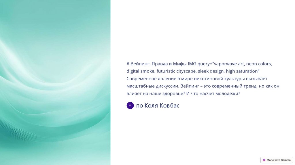 # Вейпинг: Правда и Мифы IMG query="vaporwave art, neon colors,digital smoke, futuristic cityscape, sleek design, high saturation"