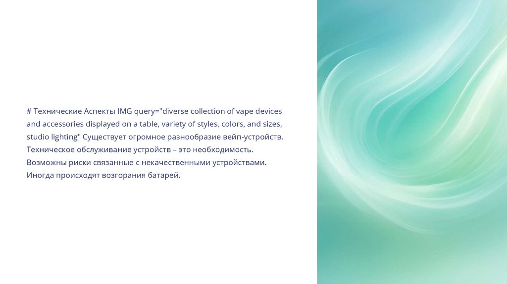 # Технические Аспекты IMG query="diverse collection of vape devicesand accessories displayed on a table, variety of styles, colors, and sizes,