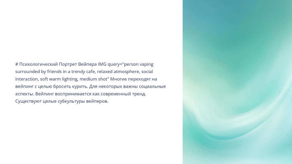 # Психологический Портрет Вейпера IMG query="person vapingsurrounded by friends in a trendy cafe, relaxed atmosphere, social