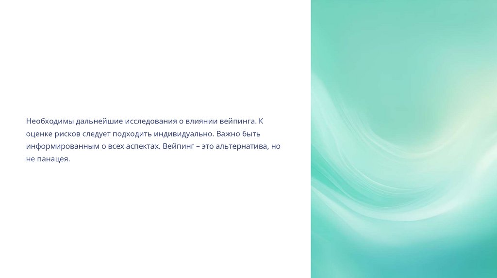Необходимы дальнейшие исследования о влиянии вейпинга. Коценке рисков следует подходить индивидуально. Важно быть