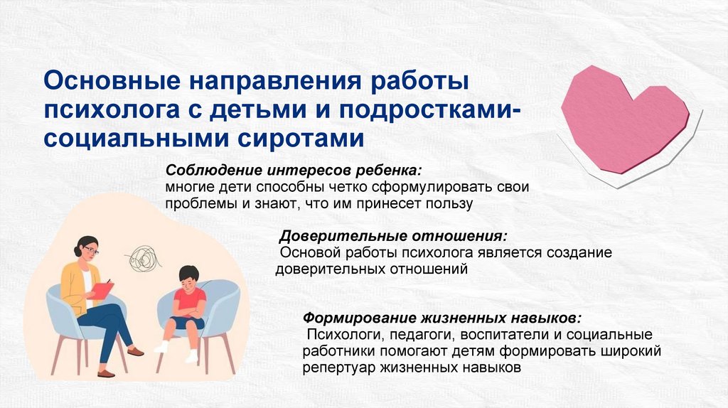 Основные направления работыпсихолога с детьми и подросткамисоциальными сиротами