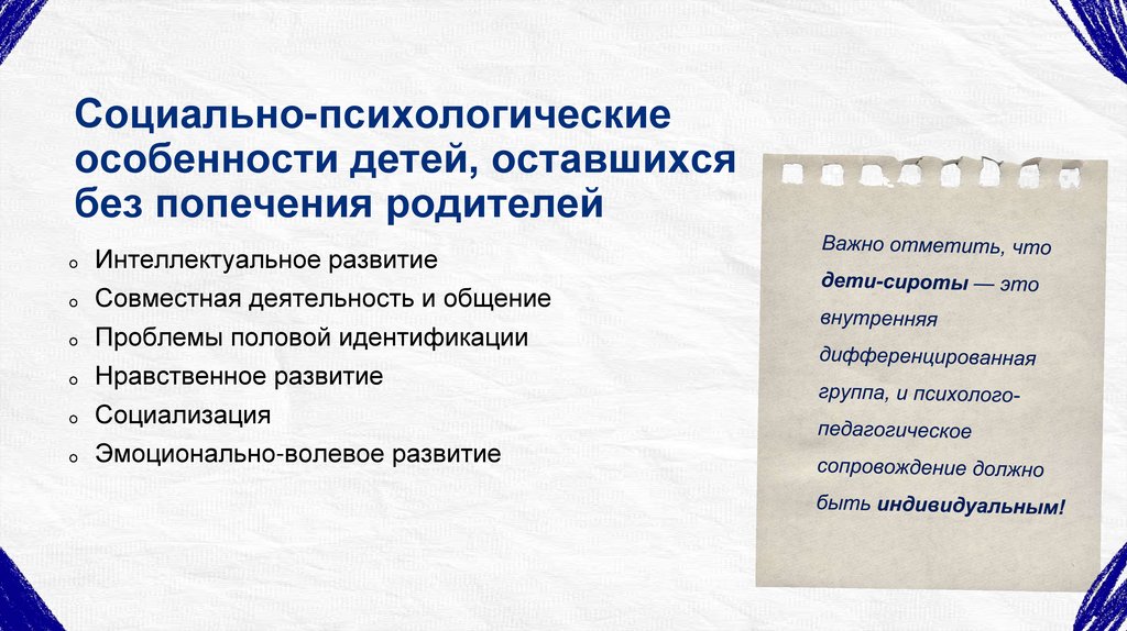 У детей-сирот часто имеются проблемы, связанные с нарушением