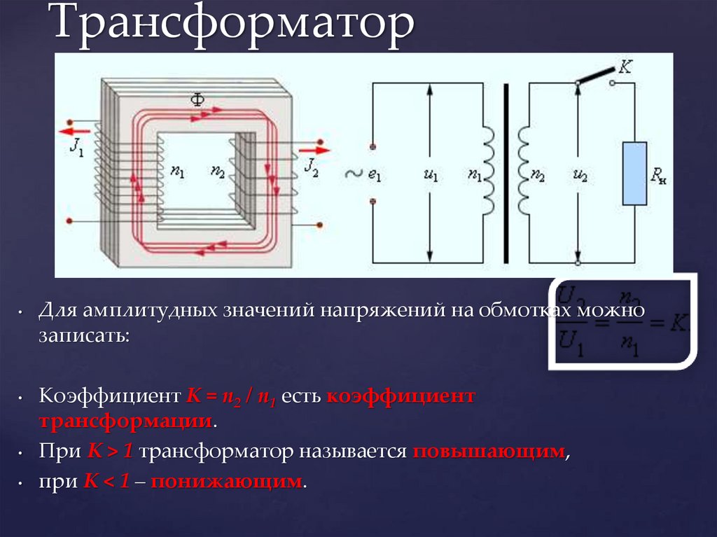 при K < 1 – понижающим.
