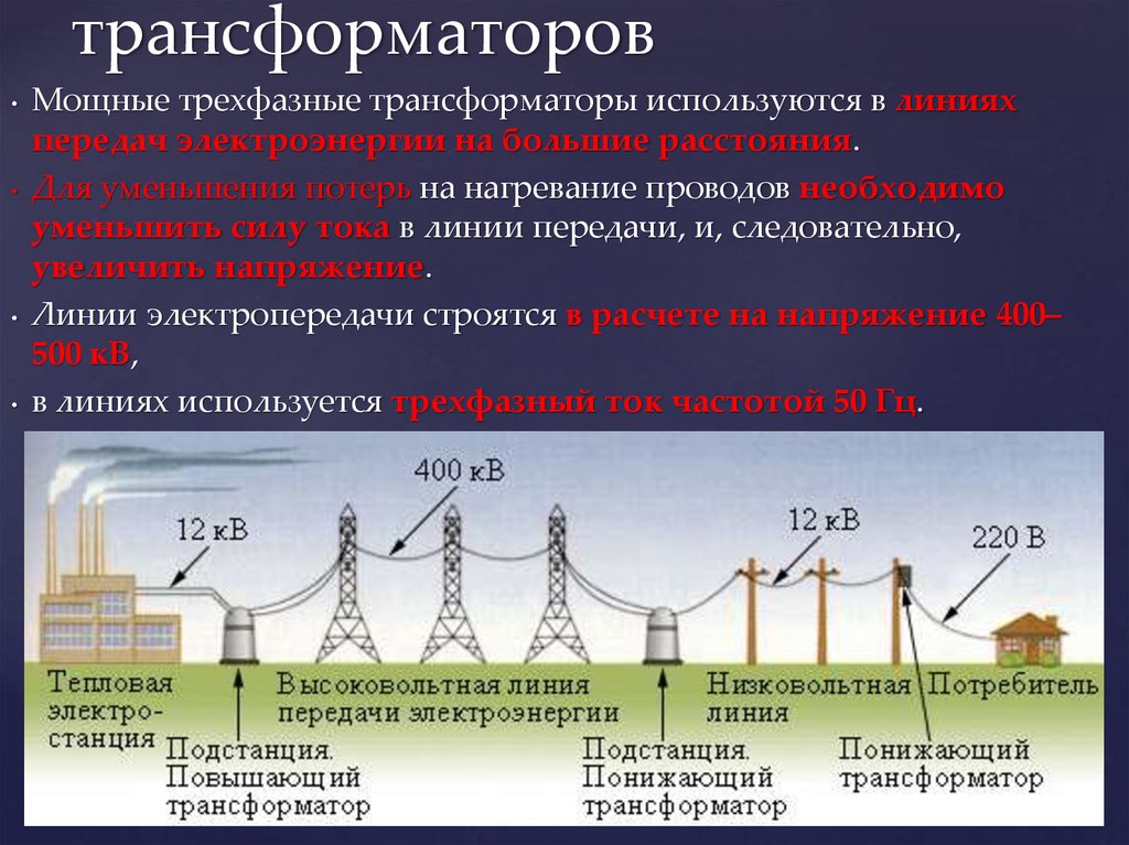 • Для уменьшения потерь на нагревание проводов необходимо