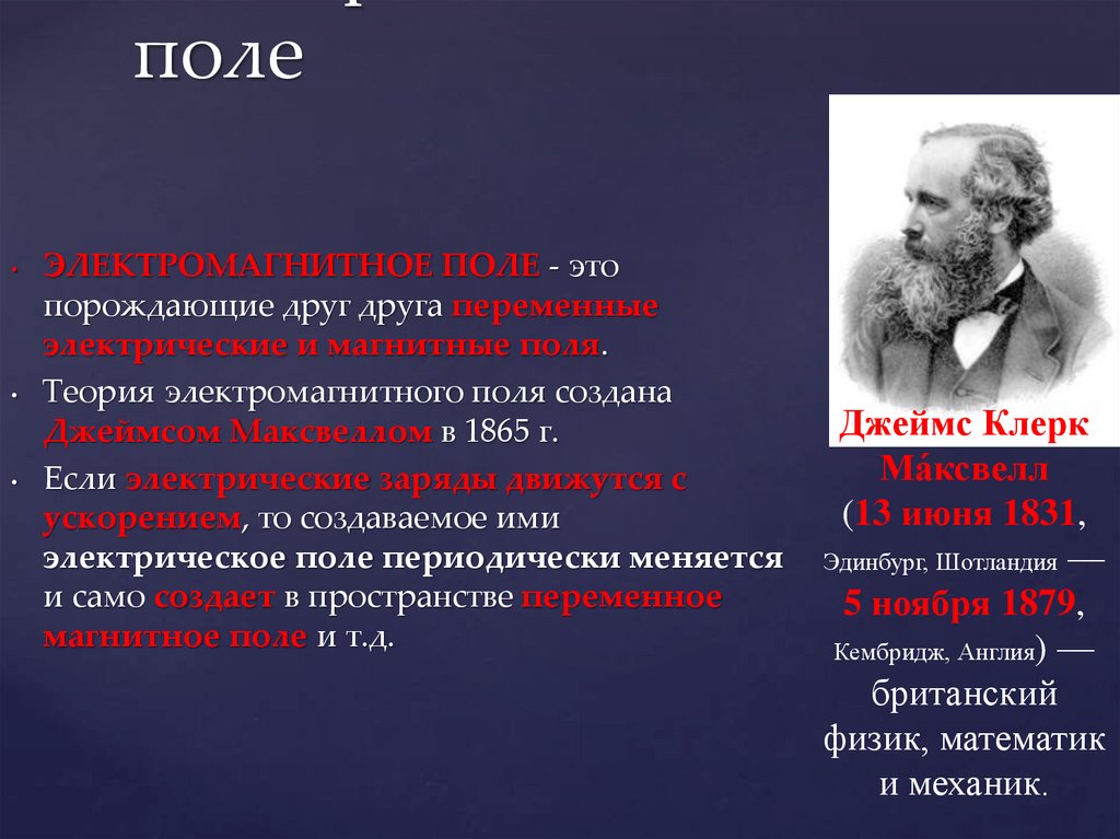 полеЭЛЕКТРОМАГНИТНОЕ ПОЛЕ - это