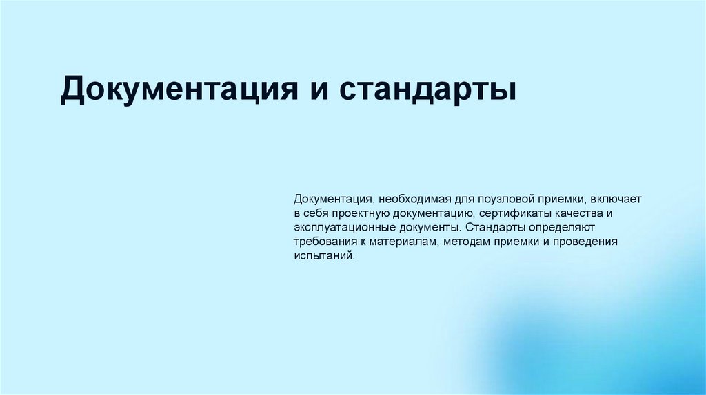 Документация и стандартыДокументация, необходимая для поузловой приемки, включает
