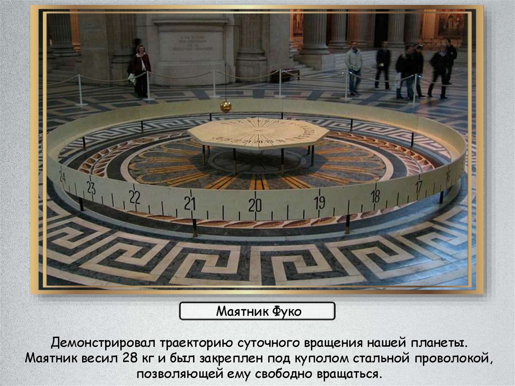 Маятник ФукоДемонстрировал траекторию суточного вращения нашей планеты.