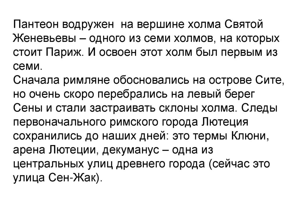 Пантеон водружен на вершине холма СвятойЖеневьевы – одного из семи холмов, на которых