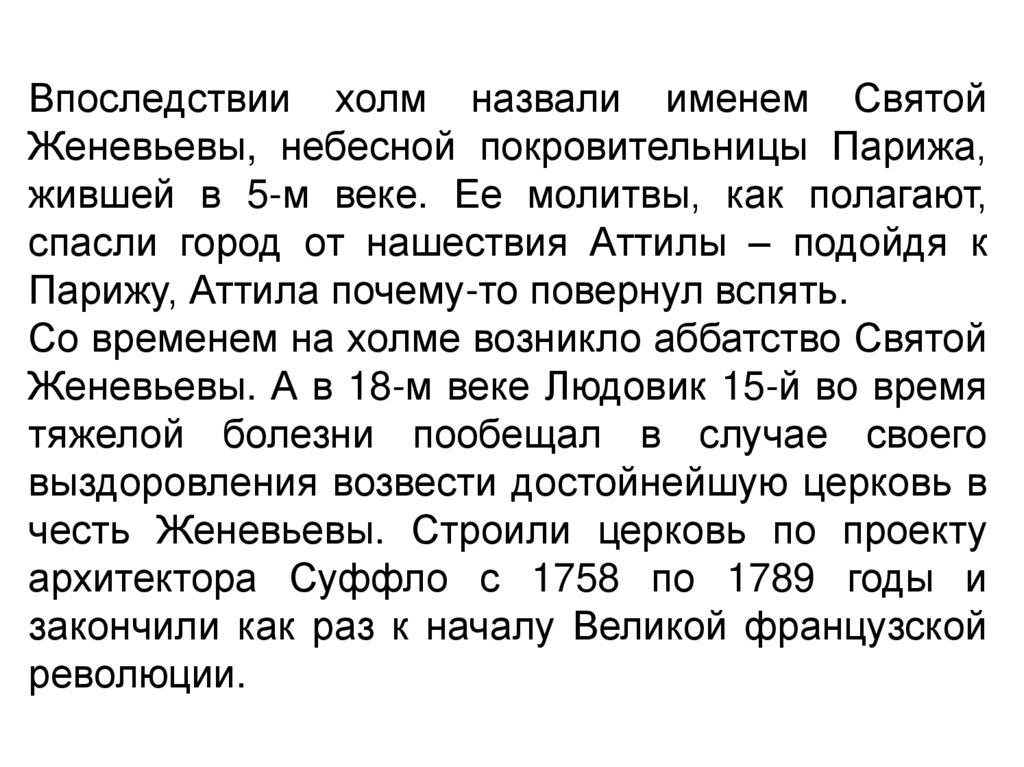 Впоследствии холм назвали именем СвятойЖеневьевы, небесной покровительницы Парижа,