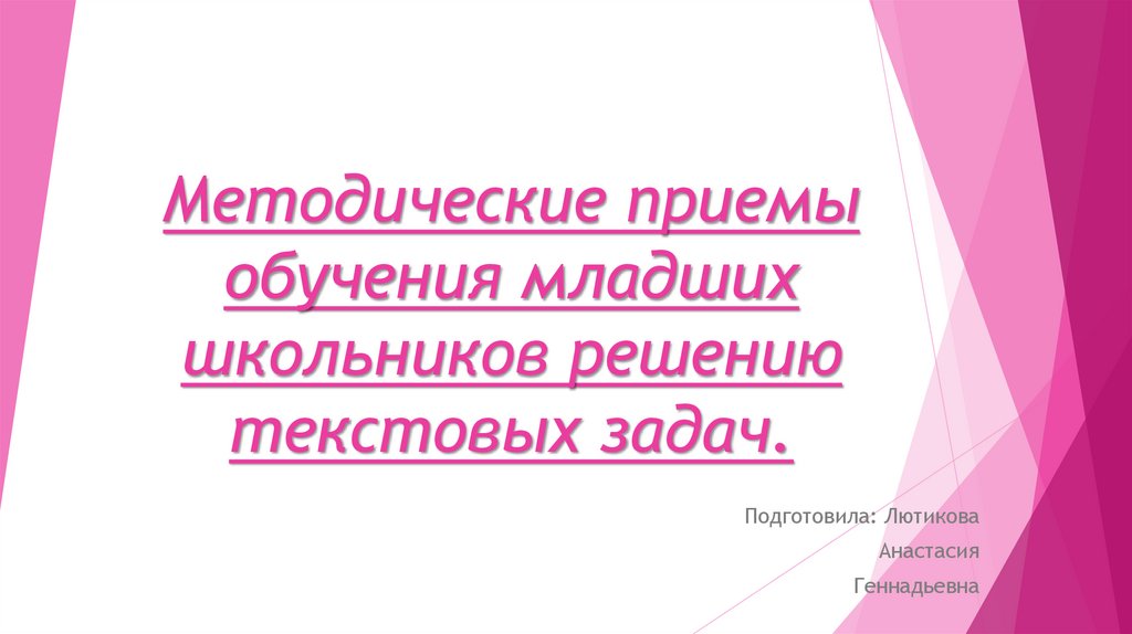 1. Методические приемы обучения младших школьников решению текстовых задач.
