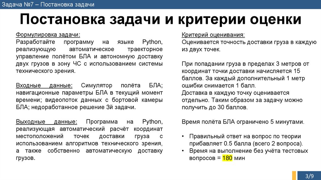 Задача №7 – Постановка задачиПостановка задачи и критерии оценки