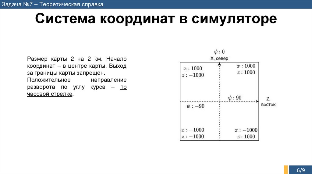 Задача №7 – Теоретическая справкаСистема координат в симуляторе