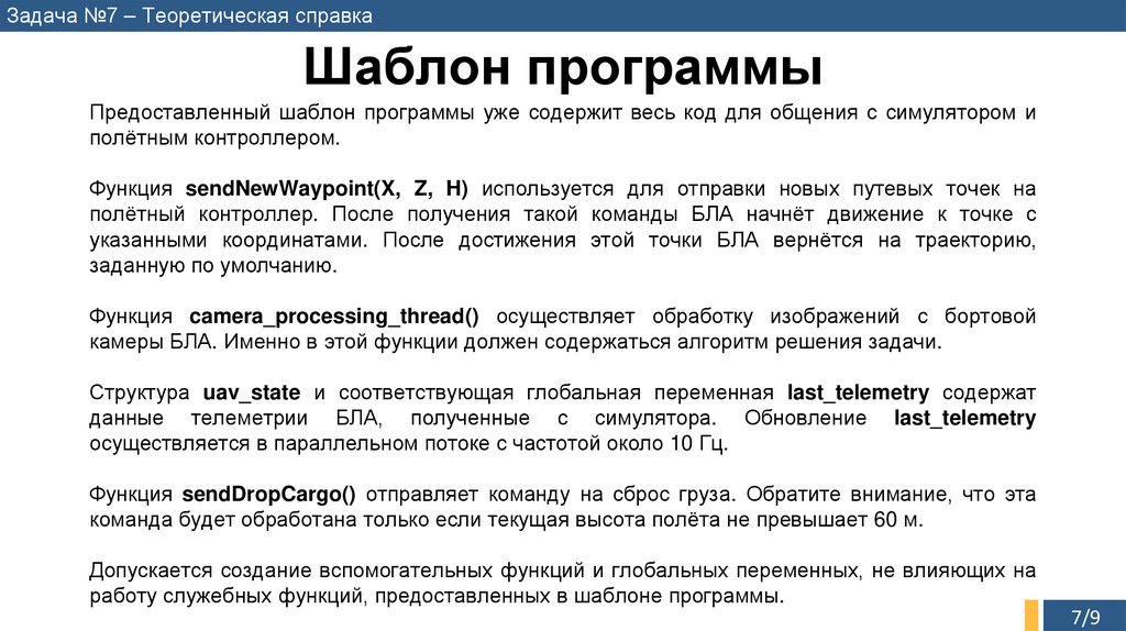 камеры БЛА. Именно в этой функции должен содержаться алгоритм решения задачи.