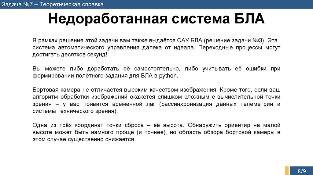 Задача №7 – Теоретическая справкаНедоработанная система БЛА