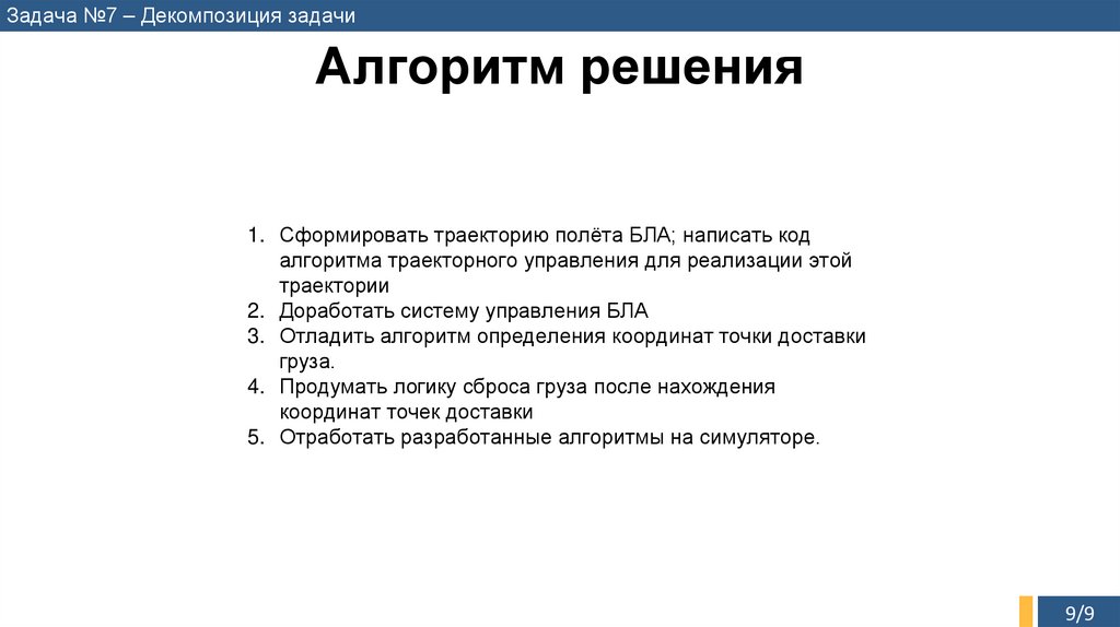 Задача №7 – Декомпозиция задачиАлгоритм решения