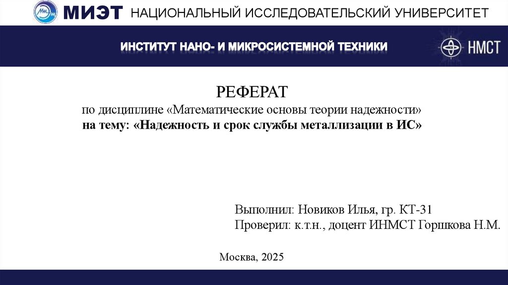 МИЭТ НАЦИОНАЛЬНЫЙ ИССЛЕДОВАТЕЛЬСКИЙ УНИВЕРСИТЕТРЕФЕРАТ