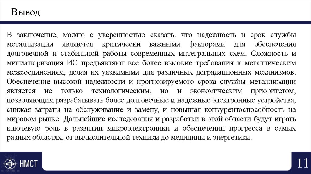 долговечной и стабильной работы современных интегральных схем. Сложность и