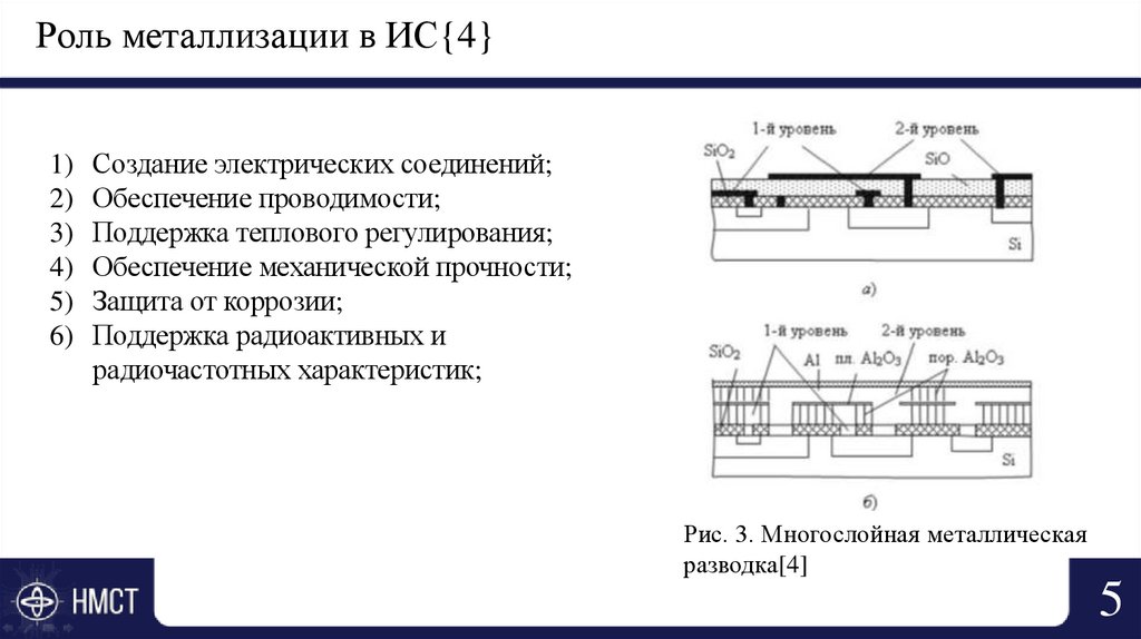 Роль металлизации в ИС{4}1) Создание электрических соединений;