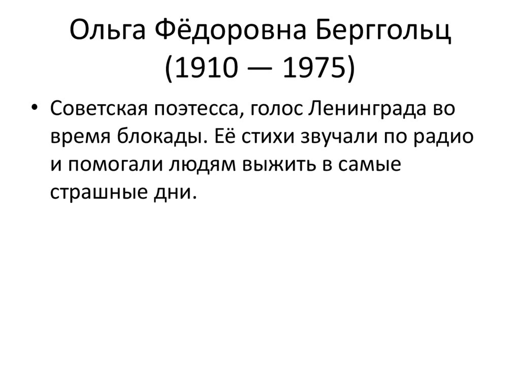 Ольга Фёдоровна Берггольц(1910 — 1975)