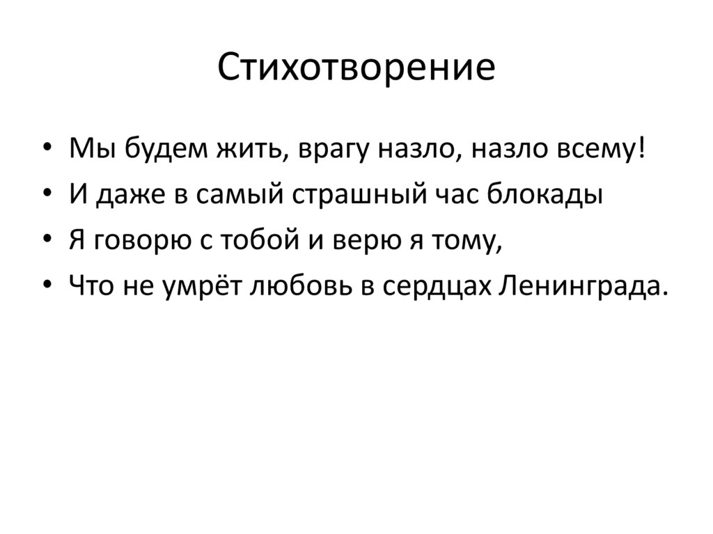 Стихотворение• Мы будем жить, врагу назло, назло всему!