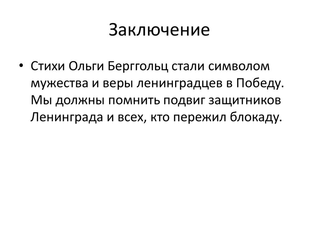 Заключение• Стихи Ольги Берггольц стали символом