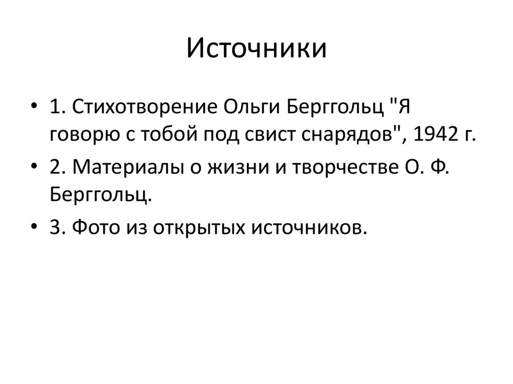 Источники• 1. Стихотворение Ольги Берггольц "Я