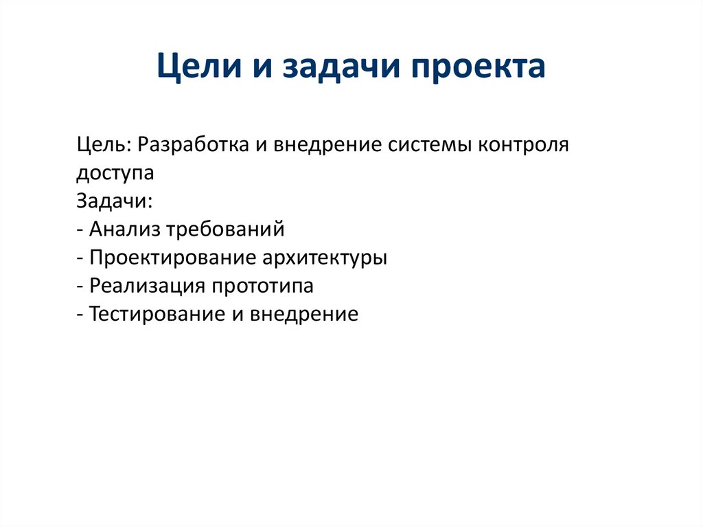 Цели и задачи проектаЦель: Разработка и внедрение системы контроля