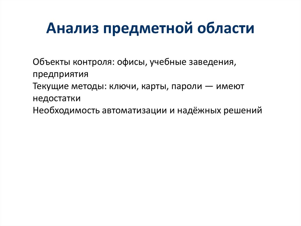 Анализ предметной областиОбъекты контроля: офисы, учебные заведения,