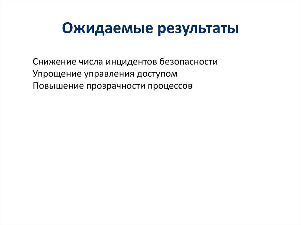Ожидаемые результатыСнижение числа инцидентов безопасности