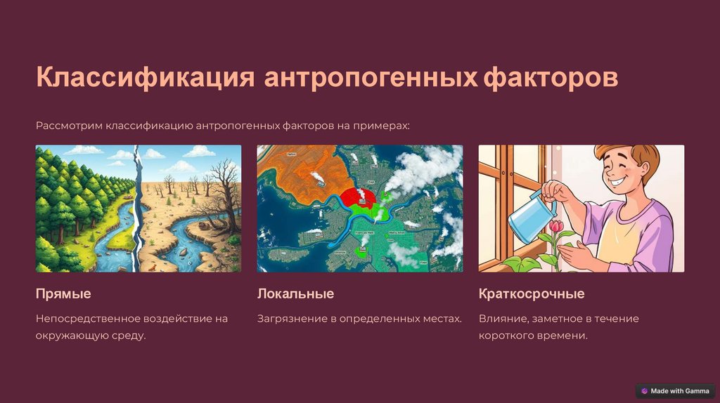 Классификация антропогенных факторовРассмотрим классификацию антропогенных факторов на примерах: