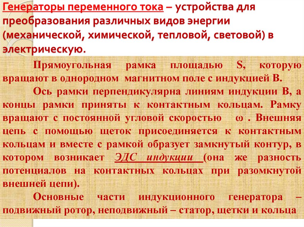 2. Генераторы переменного тока – устройства для преобразования различных видов энергии (механической, химической, тепловой,