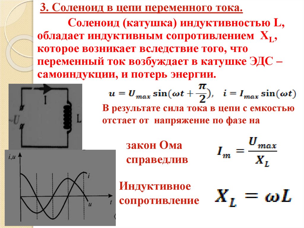 3. Соленоид в цепи переменного тока.Соленоид (катушка) индуктивностью L,