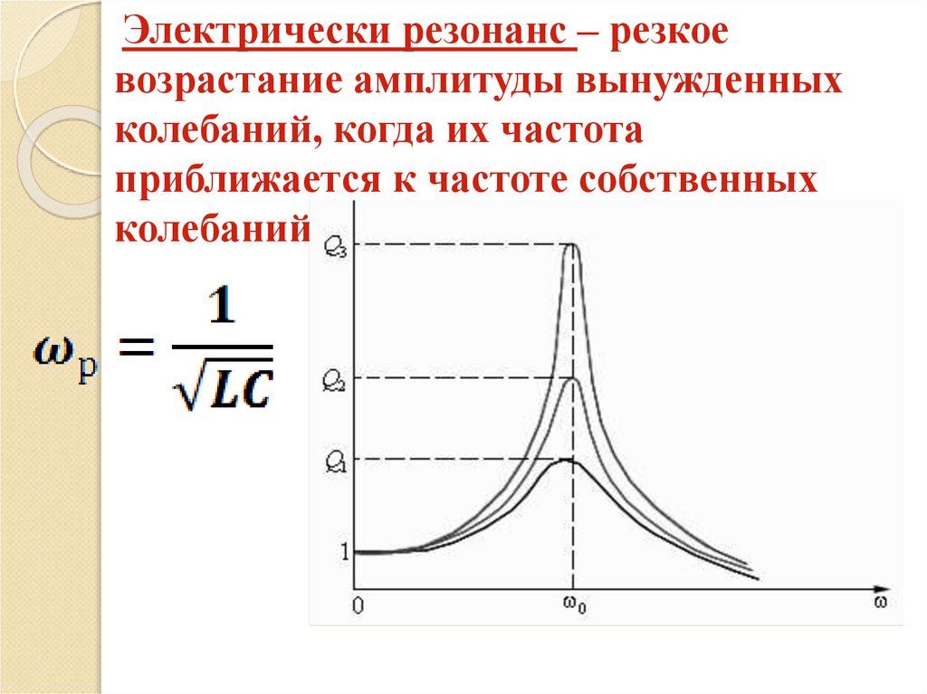 Электрически резонанс – резкоевозрастание амплитуды вынужденных