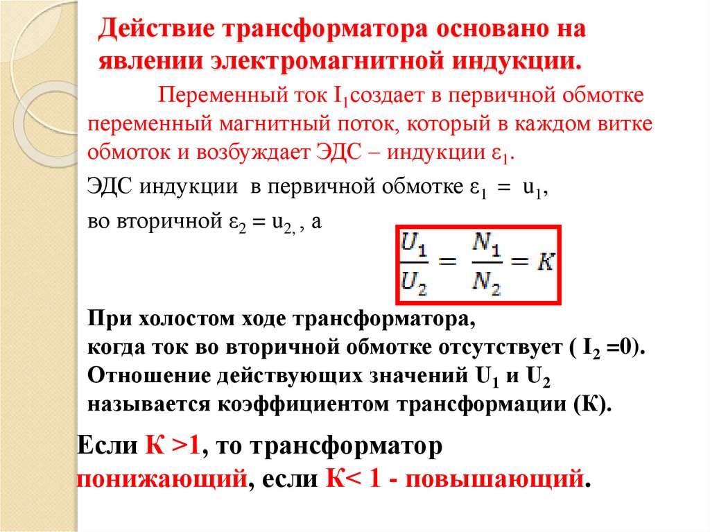 Если К >1, то трансформатор