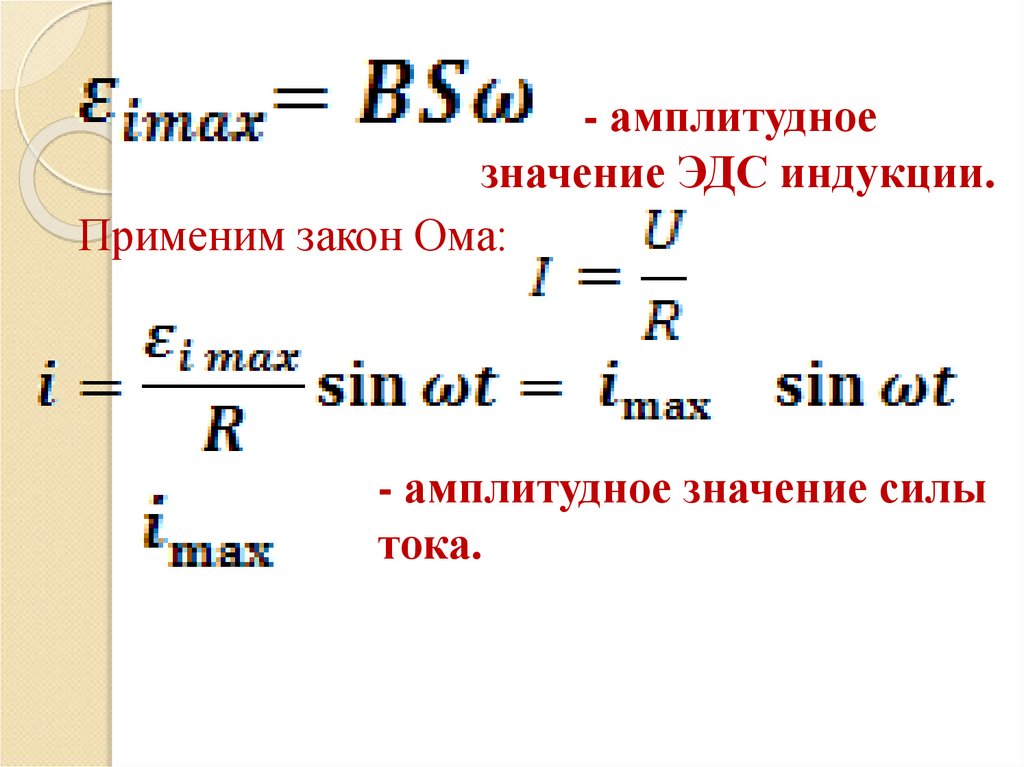 - амплитудноезначение ЭДС индукции.