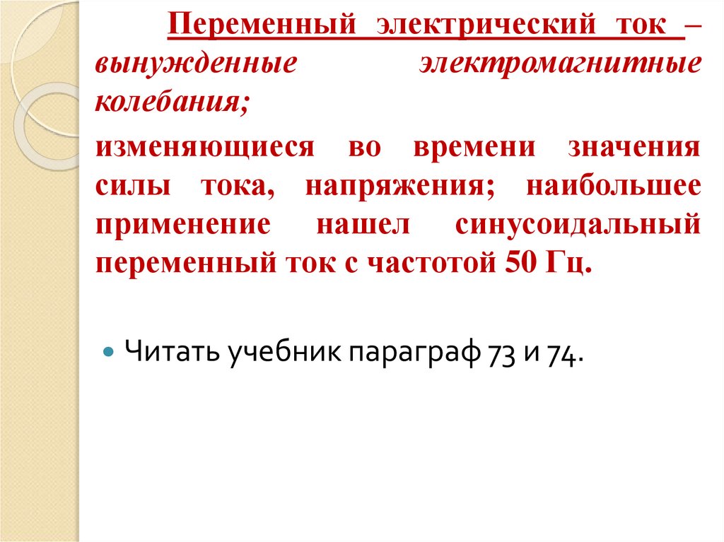 Переменный электрический ток –вынужденные