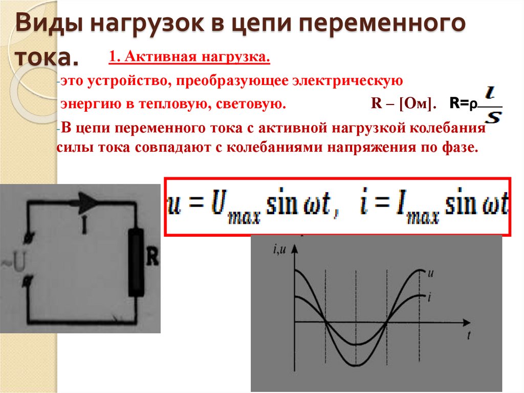 - В цепи переменного тока с активной нагрузкой колебания
