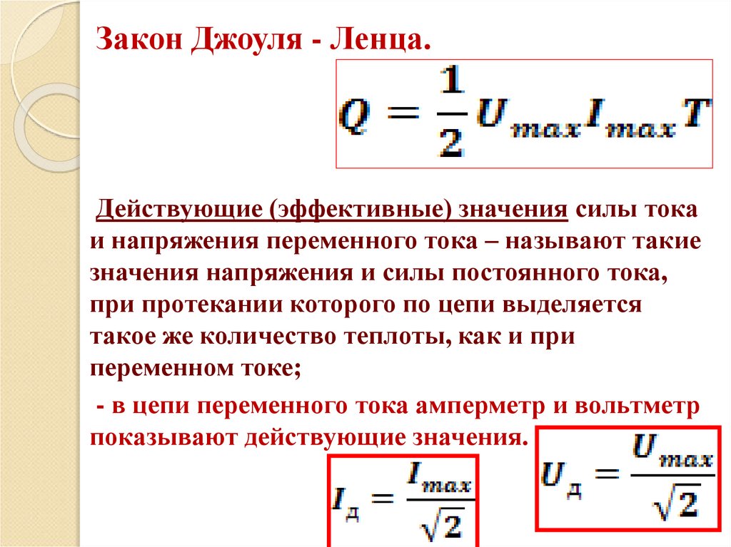 Закон Джоуля - Ленца.Действующие (эффективные) значения силы тока