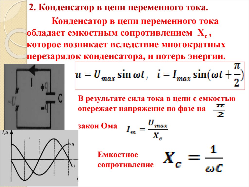2. Конденсатор в цепи переменного тока.Конденсатор в цепи переменного тока