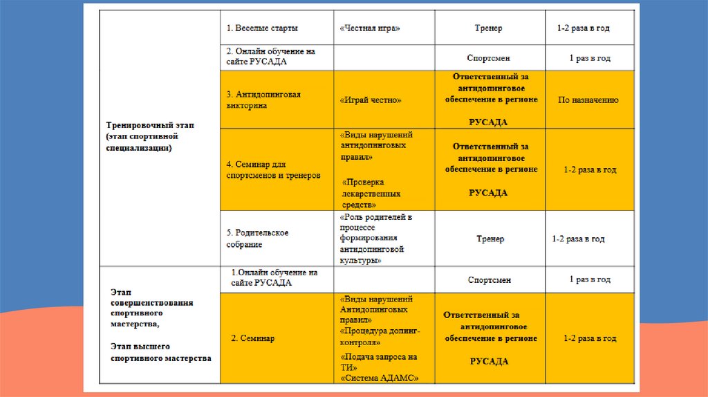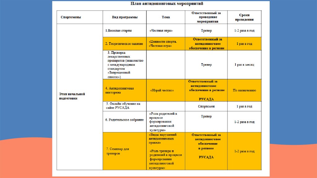 Деятельность сотрудников русада в детско-юношеских спортивных школах